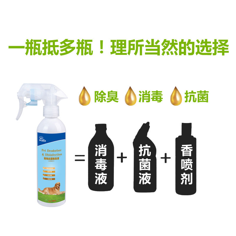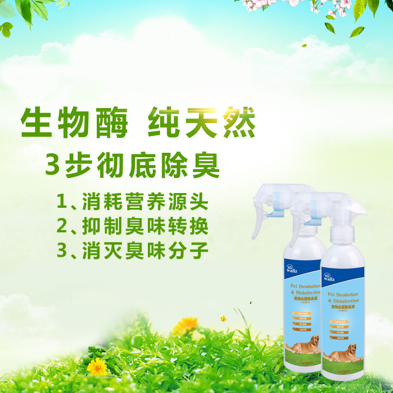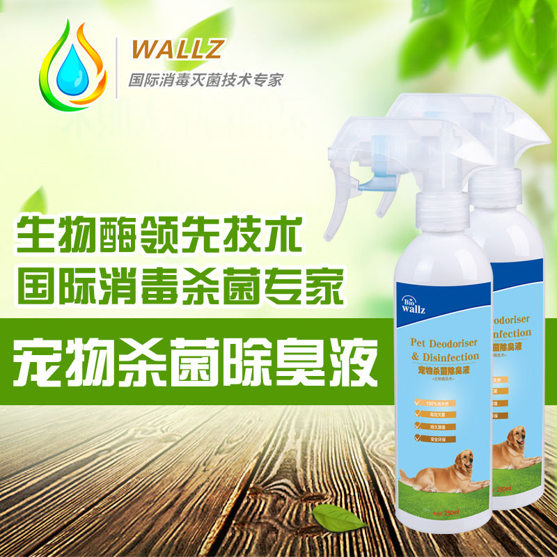 wallz 寵物殺菌除臭液,利用寵物專用生物酶及植物提取液降解尿氨、分解氨氣、硫化氫、甲硫醇、甲硫醚等惡臭物質(zhì),分解成無毒無害的物質(zhì),廣譜殺滅細菌、病毒、霉菌、真菌等,并抑制腐敗病原微生物生長。本產(chǎn)品含有純天然生物活性物質(zhì),高效殺菌,持久祛味,綠色環(huán)保,人畜無害,提高寵物居室環(huán)境空氣質(zhì)量,是保持您和寵物健康的最佳選擇。